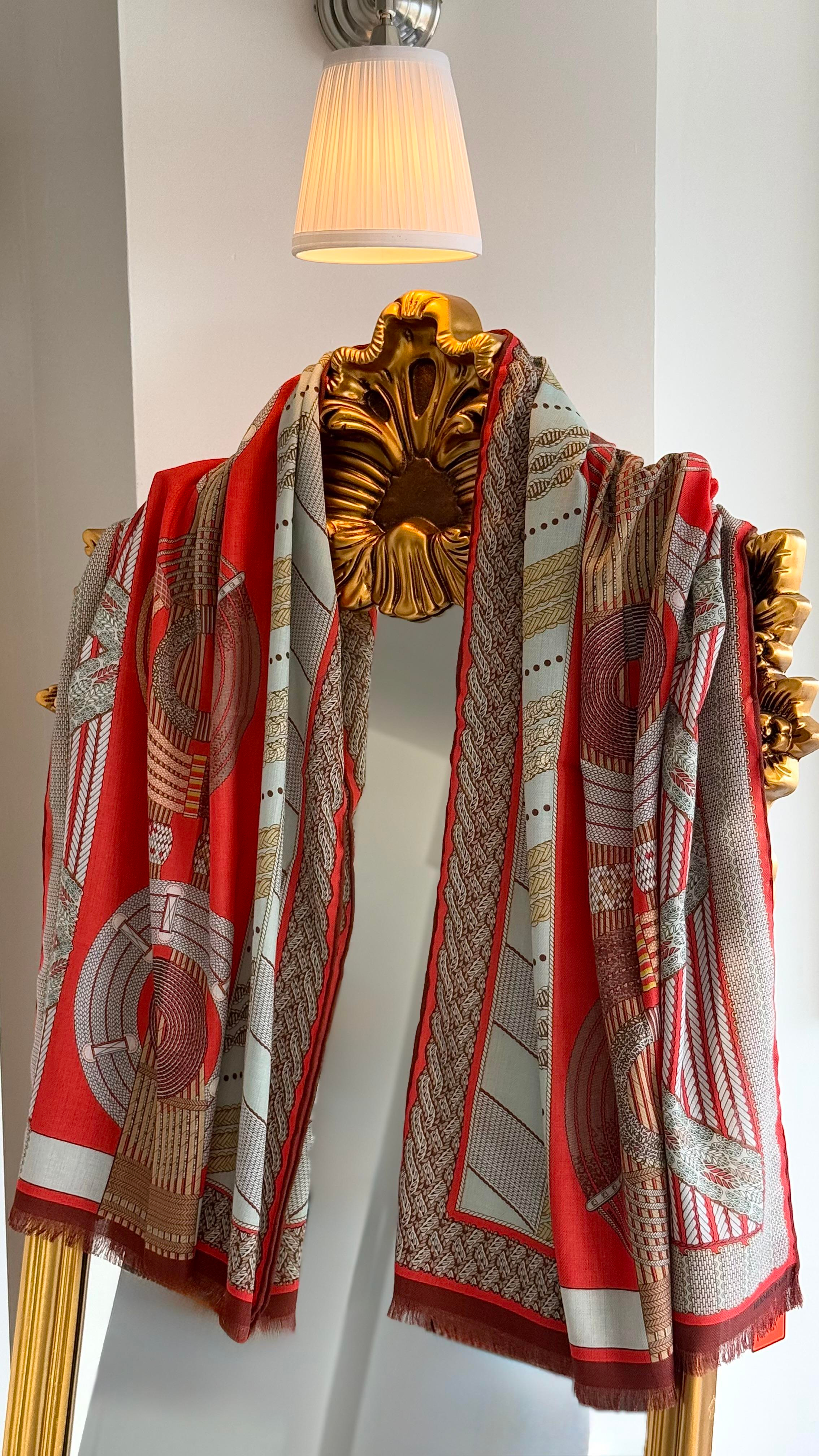 KIRMIZI ÇOK RENKLİ HRMS YÜN İPEK ŞAL
