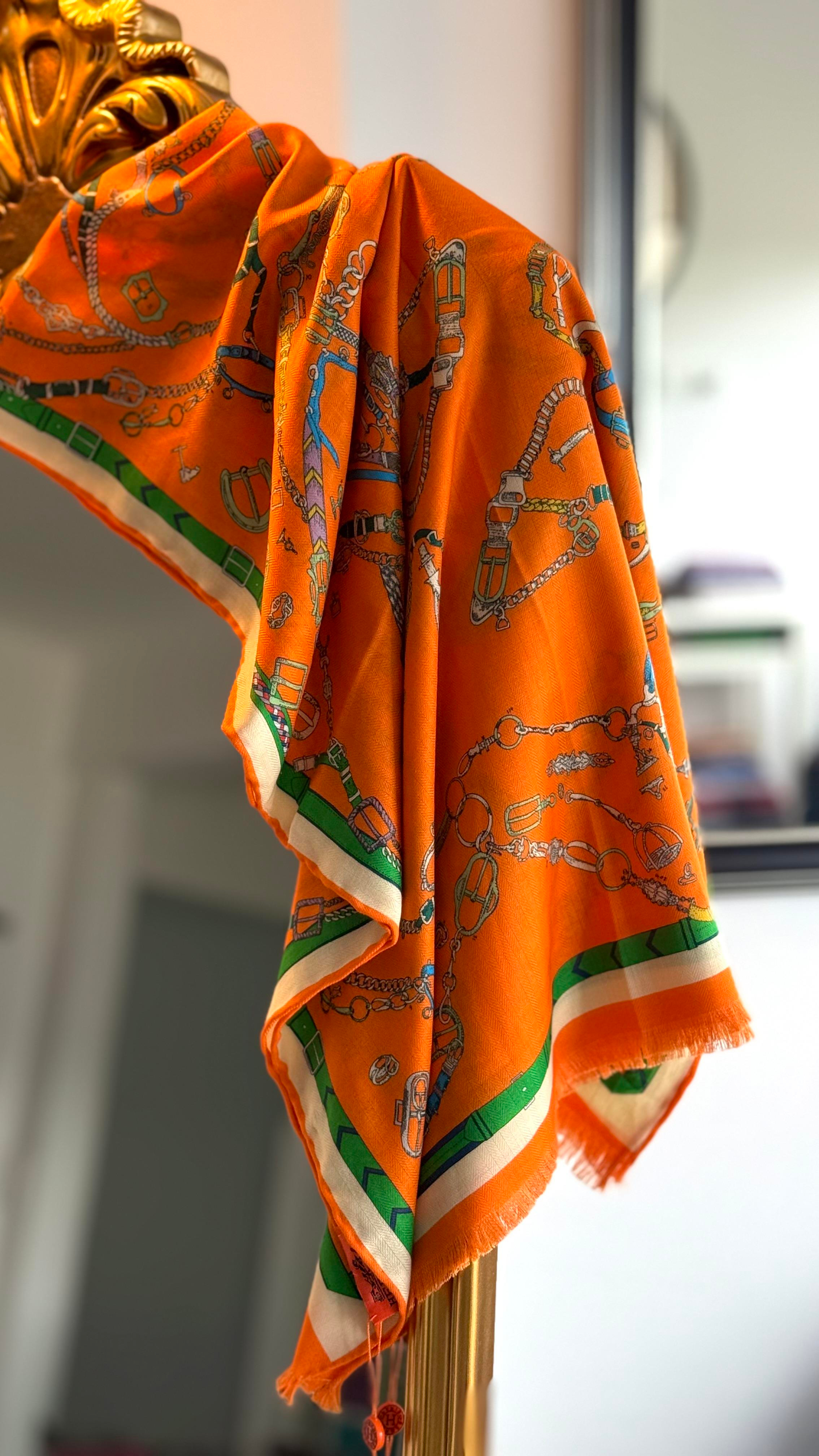 TURUNCU KEMER DESEN HRMS YÜN İPEK ŞAL