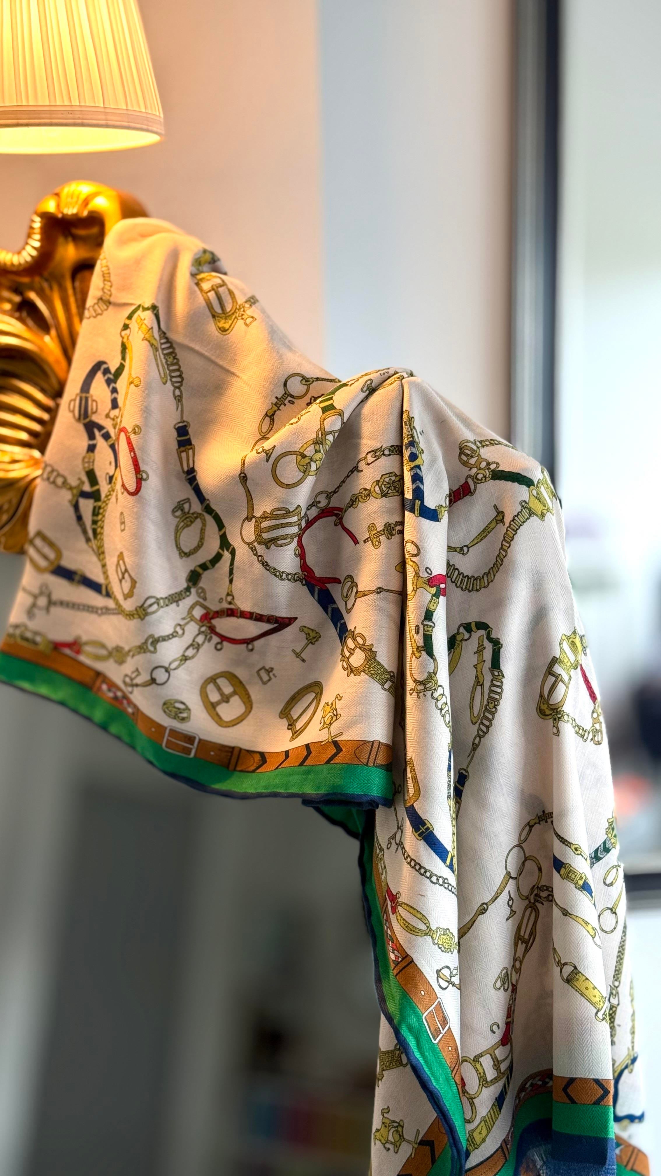 YEŞİL / EKRU KEMER DESEN HRMS YÜN İPEK ŞAL