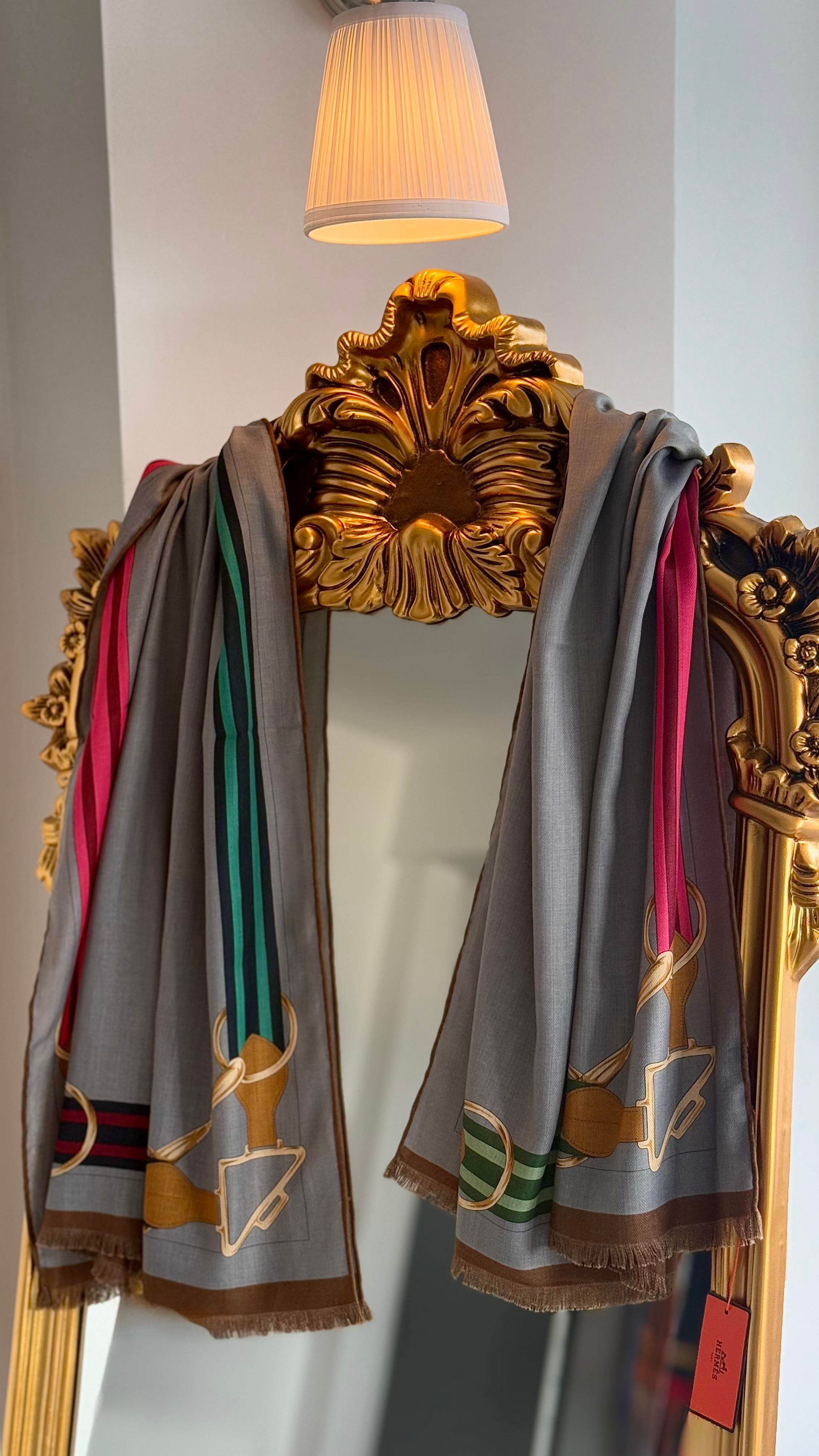 ZİNCİR DESEN GRİ HRMS YÜN İPEK ŞAL