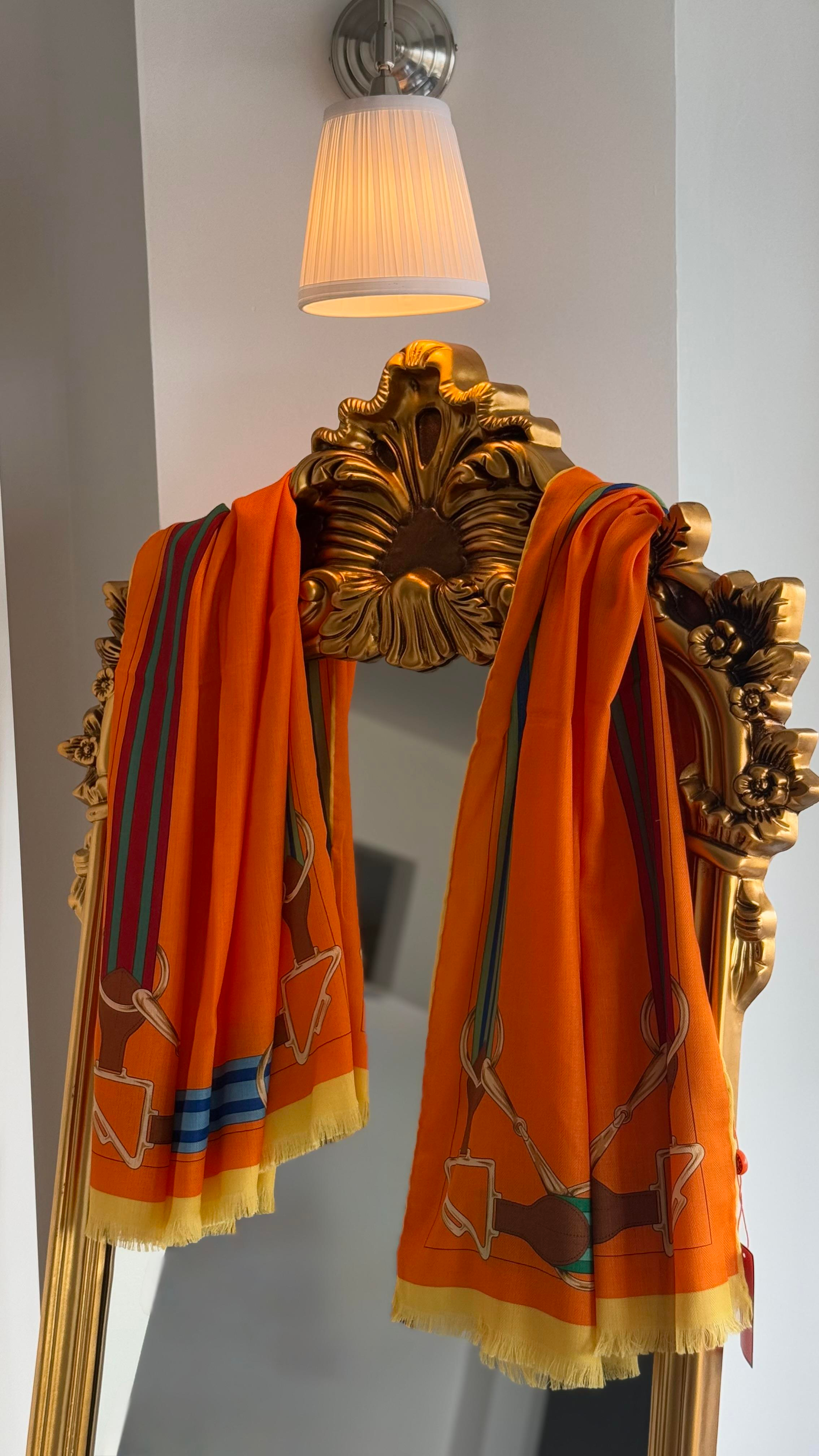 ZİNCİR DESEN TURUNCU HRMS YÜN İPEK ŞAL